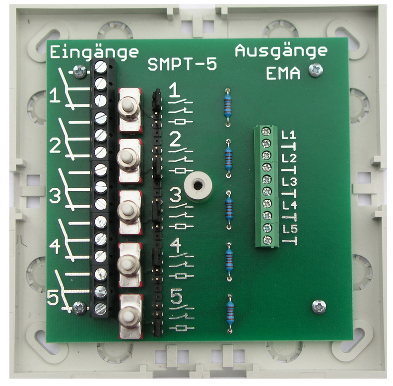 Störmelde-Prüftableau “SMPT-5” mit 5 Ein-Ausgängen.