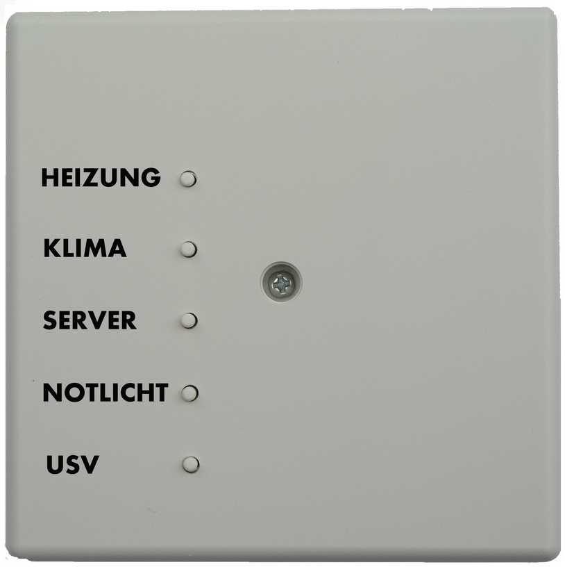 Dieses Störmelde-Prüftableau „SMPT-5G“ in der Gehäuseversion wurde konzipiert, um Störungsmeldungen beliebiger Quellen, wie z.B. von der Heizung, von der Klimaanlage, von der Notstromversorgung USV, der EDV und anderer Gebäude-relevanter Störungen an eine Leitstelle, zum Pförtner etc. weiterleiten zu können. Da die Störungen aus bspw. Heizung, Klima, EDV unterschiedliche Potentiale liefern um eine Störungsmeldung als solche erkennen zu können (manchmal schließt oder öffnet ein Kontakt, oder im besten Fall ist die Störungsmeldung mit einem Überwachungswiderstand, im Störung-„absetzenden“-System, also als Differenzial-Meldelinie geschaltet), lässt sich durch das Umstecken eines Jumpers je Überwachungskanal das Störungskriterium festlegen: 1.Öffnungs-Kontakt, 2.Schließer-Kontakt, 3.Öffnungs-Kontakt mit Widerstandsüberwachung. Die 5 Kanäle arbeiten untereinander potentialfrei (obwohl das Foto an den Ausgängen mit einem Masse-Zeichen versehen ist, sind diese Anschlüsse nicht untereinander verbunden). Durch das Beschalten der Eingangsklemmen und dem Umstecken der Jumper wird die Art der Kontaktgabe im Störungsfall festgelegt (Öffner, Schließer, widerstandsüberwachter Öffner). Der beigefügte „Beipackzettel“ beschreibt in Kurzform das Produkt incl. der Beschaltung der Platine undenthält die Auflistung der technischen Daten