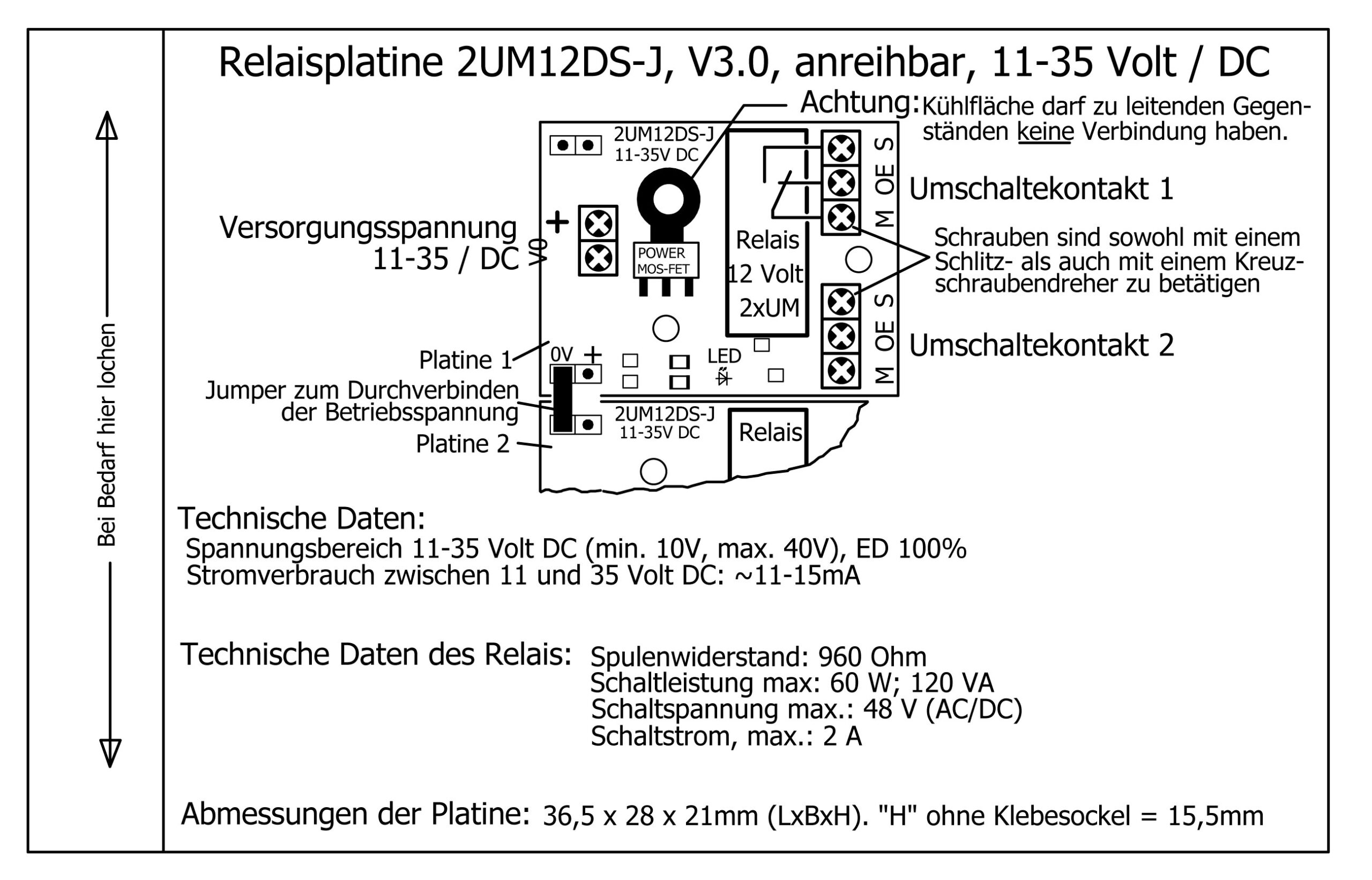 Relaisplatine “2UM12DS-J”, V3.0, neu: Spannungsbereich 11-35V/ DC