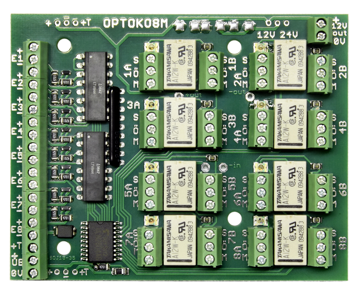 Weitere Details zu der neuen Optokoppler-Platine “OPTOKO8M” finden Sie auf der nächsten Seite.